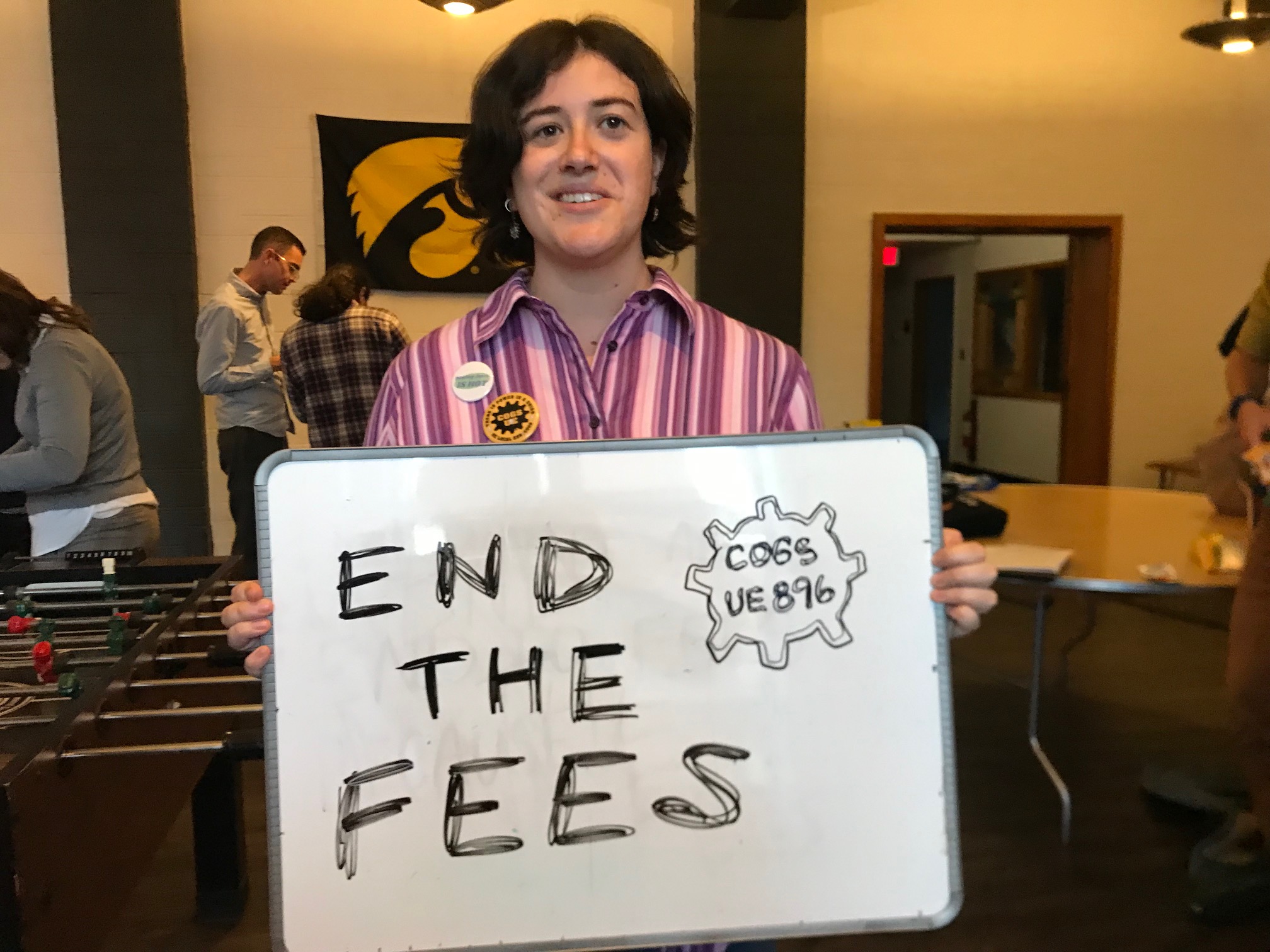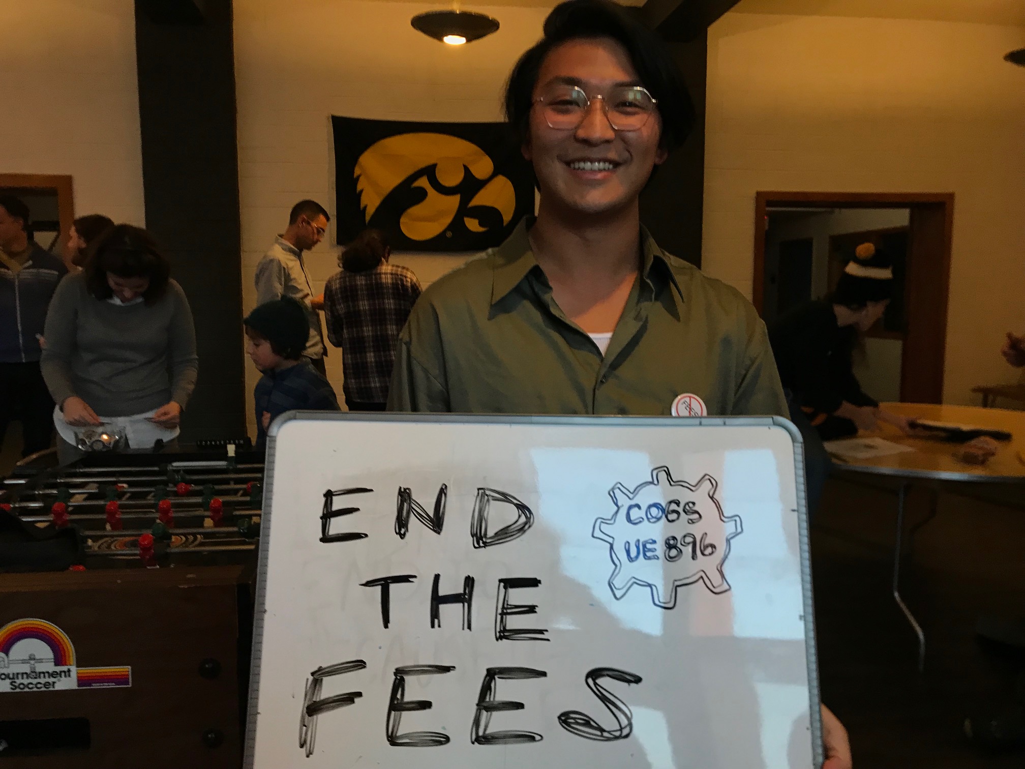 Demonstrate that you want the University of Iowa to end the fees by signing this petition. In the past, COGS has won a 50% reduction in mandatory fees. The power of our petition to end the fees is tied to our strength as a union. Only a petition with a powerful union behind it will be able to end the fees. We can only improve our contract, working conditions, and win an end to fees through union power. Join the campaign and become a dues-paying member here.